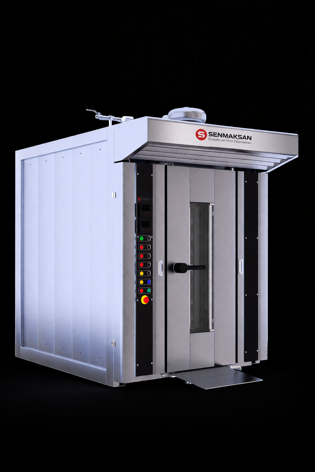 Yüksek kapasiteli üretim ve homojen pişirme performansı sunan Şenmaksan Döner Arabalı Fırın,